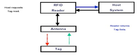 - Reader - Device that interacts with RFID tag, it has an antenna that emits radio waves; the tag responds by sending back its data.